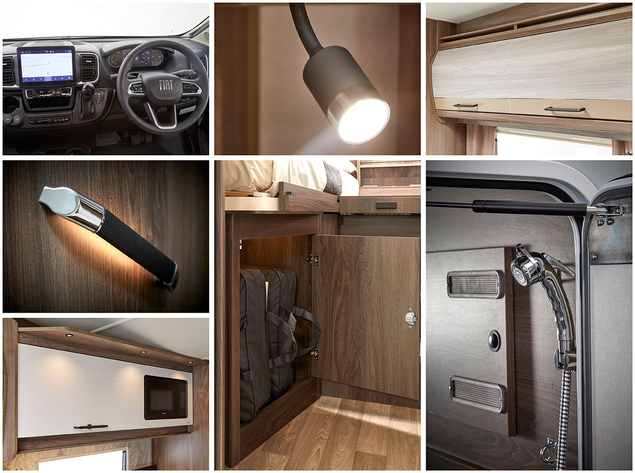 Step inside the Avventura and discover a space where premium materials and intelligent design come together to create a motorhome that feels like home. From soft-close cabinetry and stain-resistant furnishings to the luxurious fixed bed and thoughtfully placed ambient lighting, every detail is crafted for comfort. With a stylish wood finish, modern accents in matt black, and seamless storage solutions, the Avventura’s interior blends elegance with practicality, giving you the perfect environment to relax and enjoy life on the road.