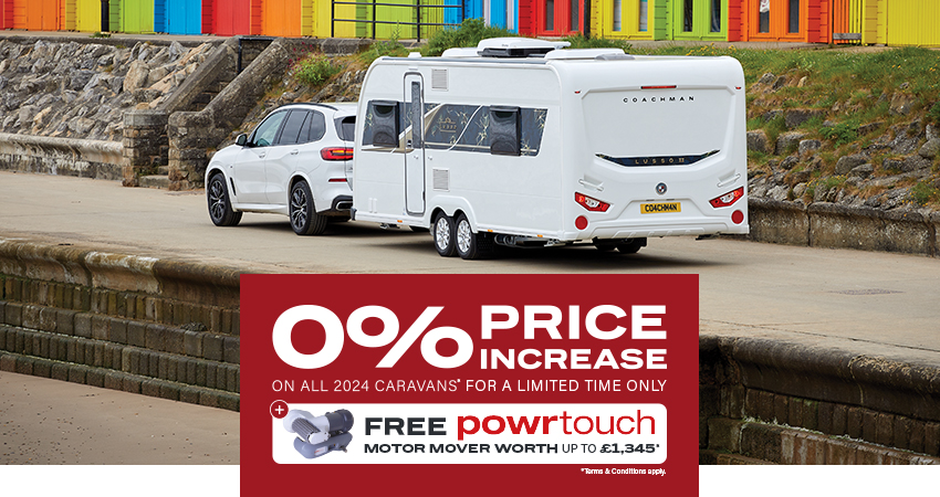 With quality caravans and motorhomes lined up for 2024 (including improved versions of our popular Acadia, VIP, Laser, Laser Xcel, Travel Master and Lusso), Coachman customers will get even more for their money. As if that wasn’t enough, as a further incentive to take advantage of this limited time only offer, we’re also including a free Powrtouch motor mover (worth £1,345).
